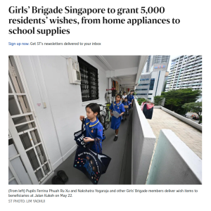 Girls’ Brigade Singapore to grant 5,000 residents’ wishes, from home appliances to school supplies
