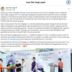 Girls' Brigade Singapore partners South West CDC to fulfil vulnerable residents' wishes